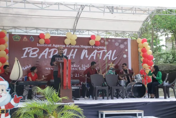 Ketua Panitia Natal, Dr. Yakobus Adi Saingo, M.Pd.K., menyampaikan bahwa momen Natal menjadi kesempatan istimewa untuk merefleksikan kasih Kristus. Ia juga mengumumkan rencana kegiatan bakti sosial sebagai wujud nyata kepedulian IAKN Kupang terhadap sesama.