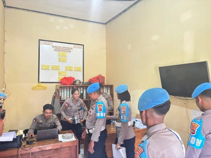Sebagai upaya meningkatkan kedisiplinan, Tim Propam Polres Rote Ndao dipimpin oleh Kanit Provos Aiptu Marielis Niap bersama lima orang anggotanya melakukan inspeksi mendadak ke Bag Sat Sie Polres pukul 11.00 Wita. Mereka memeriksa kehadiran, kerapian ruangan, dan kedisiplinan anggota (7/1/2026).