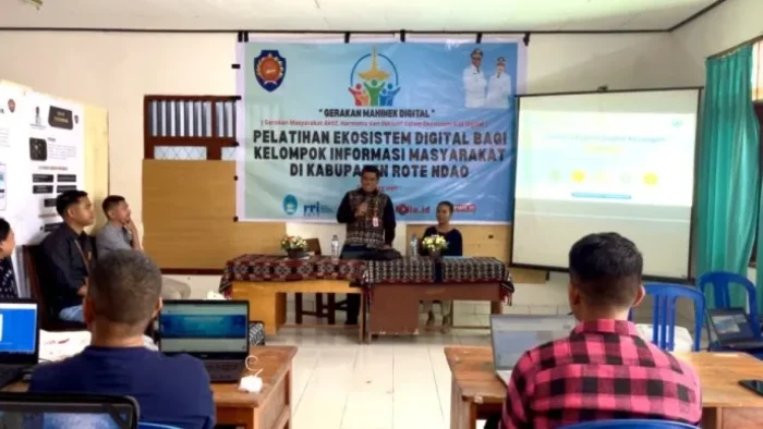 Rote Ndao,Metrotimor news.Id–Pemerintah Kabupaten Rote Ndao melalui Dinas Komunikasi, Informatika, Statistik, dan Persandian menggelar Pelatihan Ekosistem Digital bagi Kelompok Informasi Masyarakat (KIM). Kegiatan ini berlangsung di Aula Mafa’da pada Jumat (26/09/2025), dengan melibatkan peserta dari tiga desa, yakni Desa Sanggaoen, Desa Daudolu, dan Desa Helebeik.